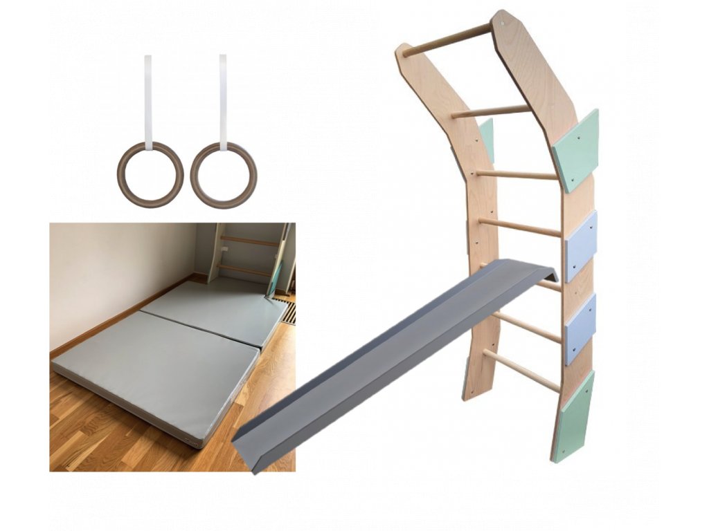 Akční set: Žebřiny Maxi Natural, Skluzavka, Kruhy, Žíněnka